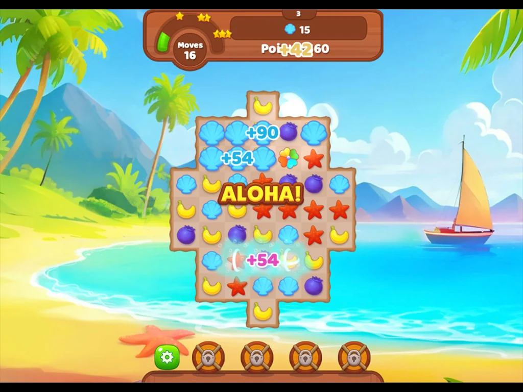 Play tropical match puzzles across more than 1,250 sunny levels, each quick to learn and satisfying to complete. Some boards are straightforward. Others ask you to slow down and think. That balance keeps the game enjoyable whether you have five minutes or an hour.